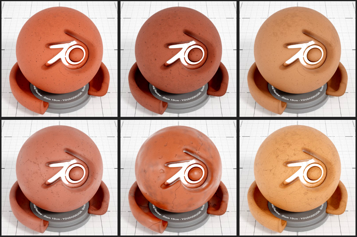 Terracotta is traditionally the material for breeze blocks, so we've taken extra care to give you a procedural matreial that'll allow you you to recreate the widest variety of terracotta materail possible. For this you'll be abble to individually adjust the color mix, the gritt, dents and cracks.